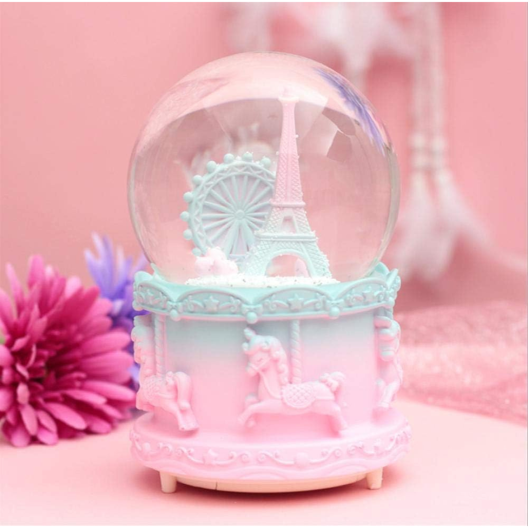 Cette jolie boule à neige musicale met en scène la Tour Eiffel dans une ambiance féerique. Elle diffuse une douce mélodie tandis que les flocons tourbillonnent et s’illumine de 7 couleurs grâce à sa lumière LED intégrée.
